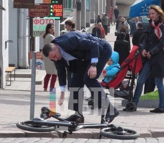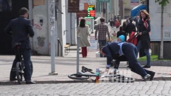 Как пишет украинский портал «Вести», возле перекрестка с улицей Владимирской в Киеве Кличко остановился на красный свет, на зелёный он продолжил движение по зебре, однако в конце перехода мэр решил запрыгнуть на велосипеде на бордюр. В итоге Кличко упал, перелетев через руль.
