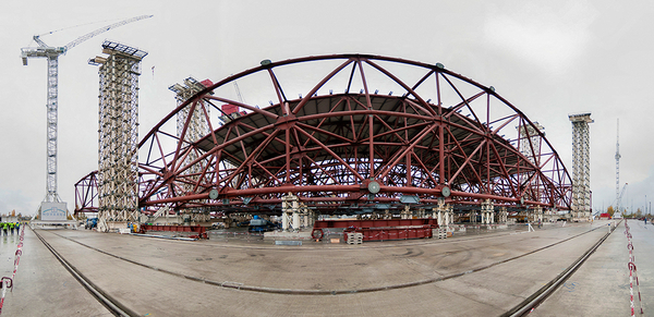 Это 12 арочных конструкций высотой по 108 метров — чуть выше храма Христа Спасителя. Длина каждого пролета — 257 метров, почти на 30 метров больше стадиона «Олимпийский» в Москве.
