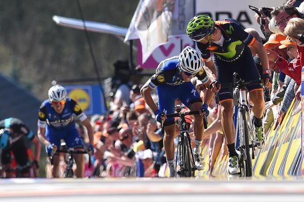 Однако, его накрыли и рывок предпринял Дэн Мартин из Etixx-Quickstep, у него на колесе мёртвым грузом повис опытный Вальверде. Выждав самого подходящего момента, испанец со второй позиции предпринял свою атаку. За ним пытался усидеть молодой капитан того же Etixx-а Алафилипп, но самое лучшее, чего ему удалось добиться это второе место – рывок Вальверде поймать очень трудно. Третьим же стал его товарищ Мартин.