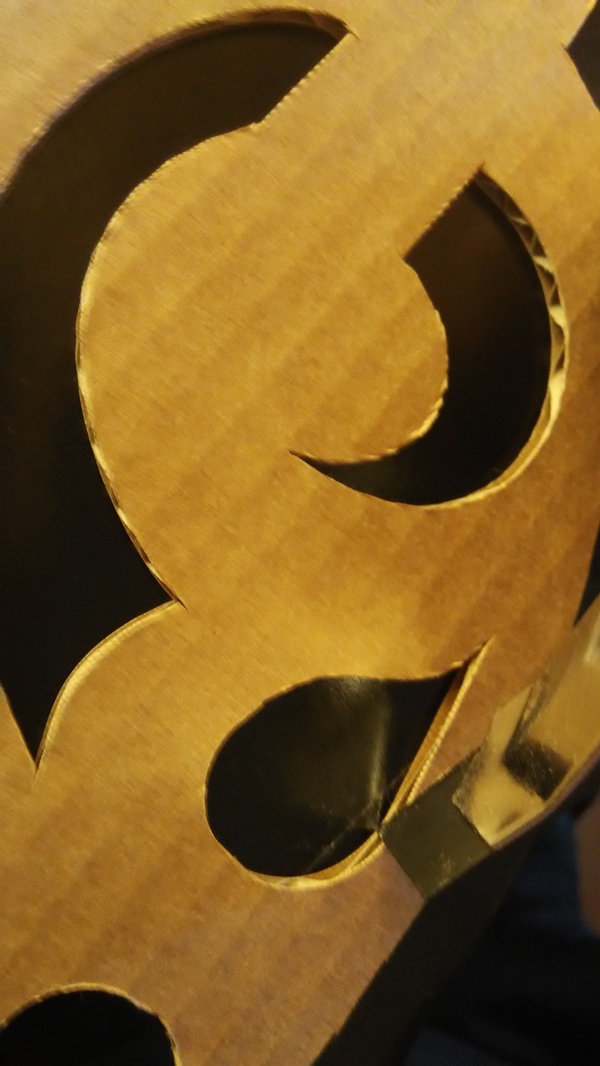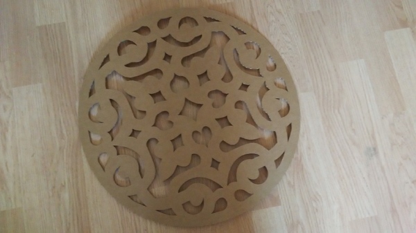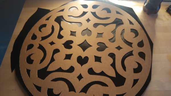 в один прекрасный день на меня таки снизошло озарение что сам светильник никакой нагрузки не несет, а поскольку так сложилось что я на работе имею доступ к станку, вырезающему коробки из картона, то после получаса работы и 7 минут вырезания получились 2 вот такие заготовки: