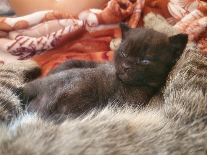 Какая она оказалась хорошая мама! Роды кстати пришлось принимать моей младшей сестре вместе с моей подругой. Когда я вернулась домой малыш уже кушал мамкино молочко и сладко мурчал.