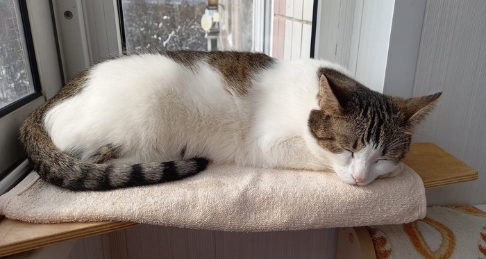 Мало того - он так все эти полтора месяца гонял бедняжку, что она уже и не знала, куда деваться... Изо всех лотков гнал, с лежанок гнал, от мисок гнал - Звёздочка могла покушать только тогда, когда он спал. Кошечка даже похудела...