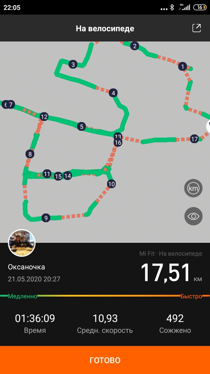 Несколько дней подряд я ездила по 10 км и то для меня очень много. Но сегодня я дорвалась - хотела 15 км, но не смогла удержаться и прогнала все 17,5.