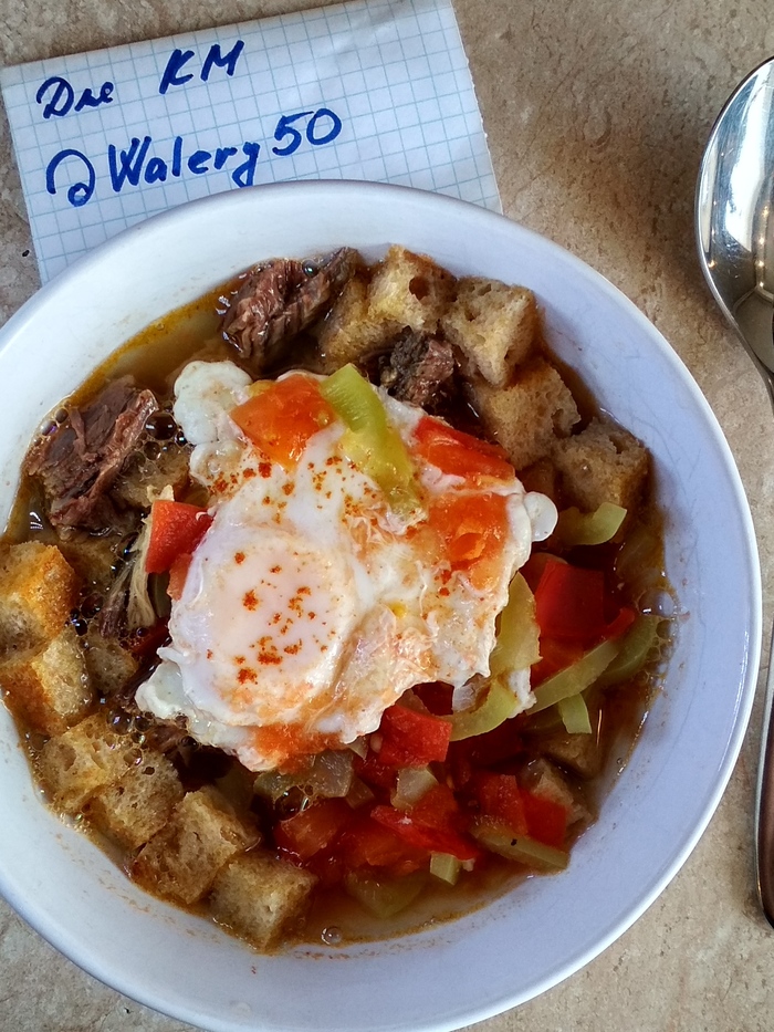 У меня дрогнула рука и добавил в тарелку немного отварной говядины из бульона ;-)