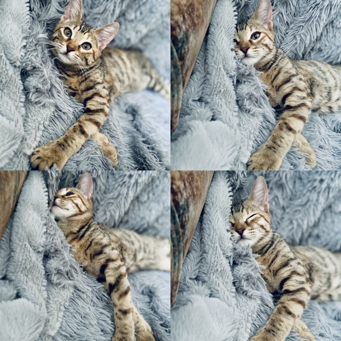 Вот уже второй месяц как меня завела 🐱 Ева, растёт она конечно же не по дням а по часам, из маленького шерстяного комочка она превратилась в грациозную тыгыдышницу. Всем кто думает заводить ли Бенгала или нет - ответ конечно же ДА. Если сравнивать с другими породами с которыми знаком (был Сибирский семейный котик, и британка). Это целая феерия активности, доброжелательности, счастья, и самое главное ума и ласки. Она сама знает когда нужно подойти и развеселить своего раба, ахах. Практически не слазит с рук, любит когда ее гладят. Питается в основном сухим кормом для котят и беременных (не реклама) «рауль лошадь», но не прочь есть абсолютно все что предлагаю (домашняя еда без специй, овощи, фрукты), с первого же дня поняла где лоток и что ходить надо именно туда. Спит со мной, соблюдает свой ночной тыгыдыг мой режим сна (бывает иногда у неё желание проснуться в 3 часа ночи чтобы со скоростью света наделать 100500 кругов по квартире) , пока я дома не отходит ни на шаг, очень разговорчивая, очень, оооооочень разговорчивая (поражаюсь количеству звуков: как трактор вибрирует и урчит она почти всегда, в ее словарик от привычных протяжных мяу есть очень высокие ноты как в итальянских операх, и «мявы» удовольствия). Если вы хотите кошечку как декор - то вам Бенгал не нужен, с ней надо внимание, общение, игры (можно нарды / домино / шахматы).