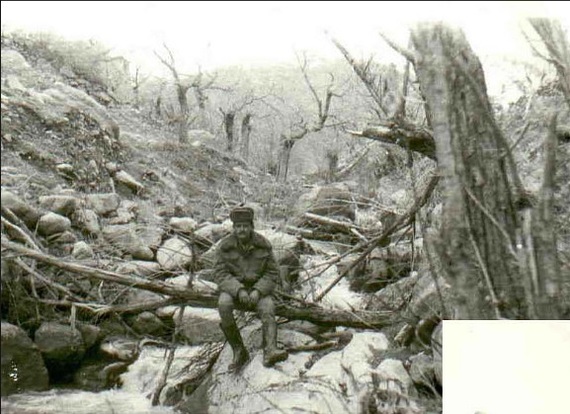 Руха, речка Гуват. Старшина 8-ой роты прапорщик Владимир Данилов позирует на нашем самодельном «мостике».