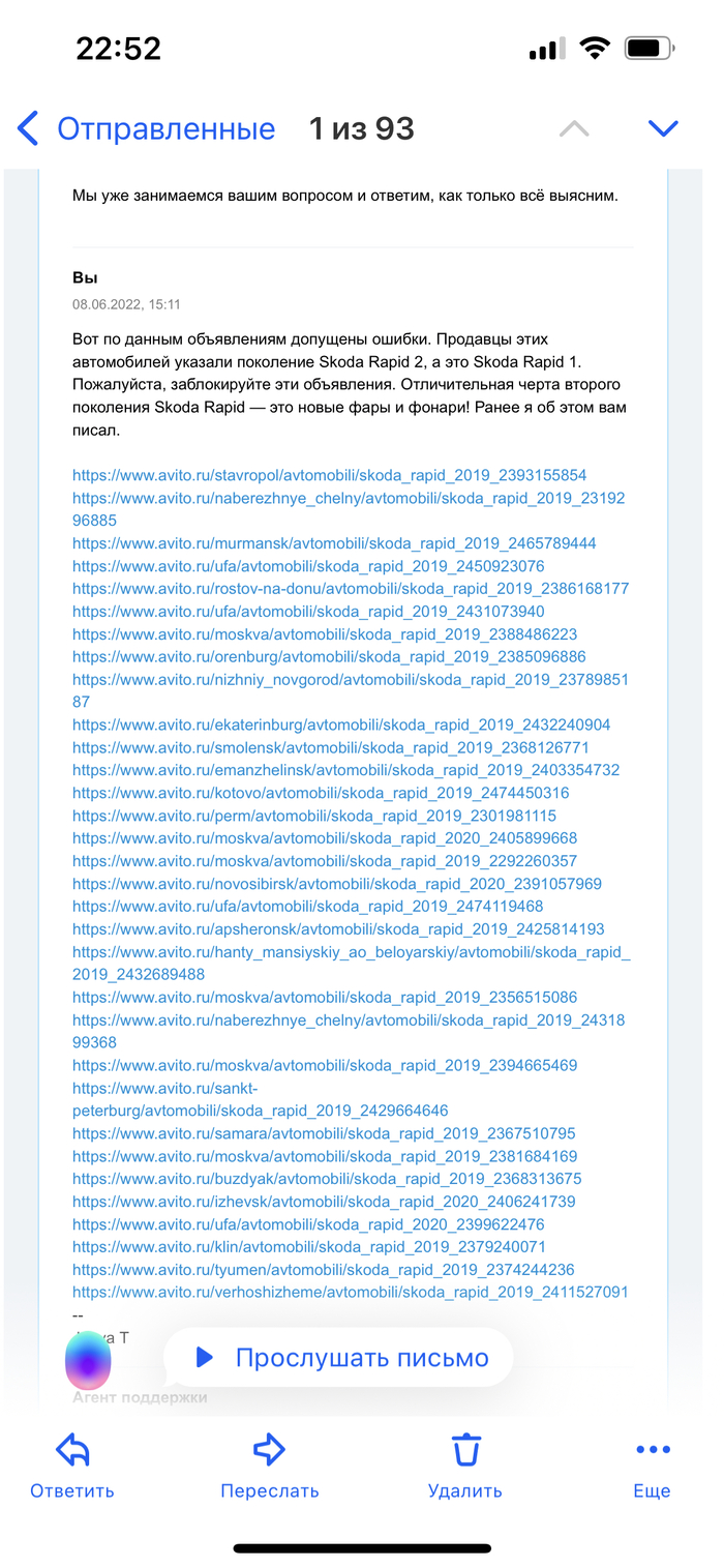 Специалист поддержки не хотел меня слушать про размещённые жалобы, акцентировал на том, что только после того, как я пришлю ссылки на объявления - они смогут РЕШИТЬ ПРОБЛЕМУ.