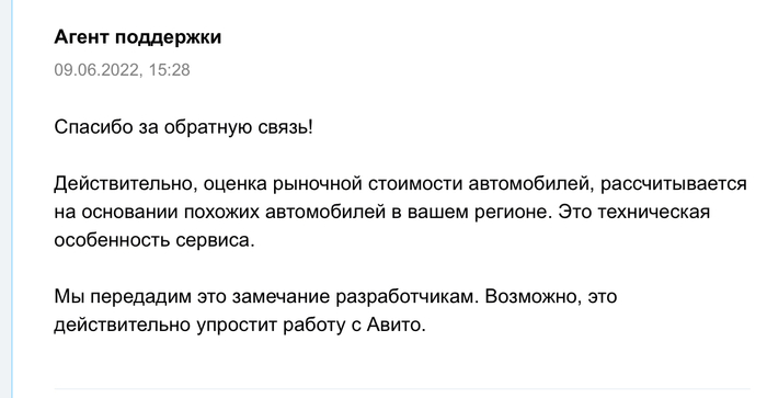 Обратив внимание на то, что оценка стоимости из-за этого рассчитывается не правильно в объявлениях, специалист ответил, что передаст эту информацию разработке 🤦♀️