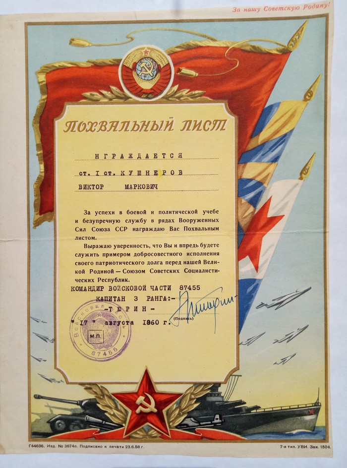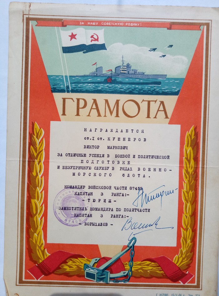 Но и на службе дед не прекращал учиться, в перерывах между вахтами проводил все время за учебниками. Условия были хуже некуда, но В.М. это не останавливало.