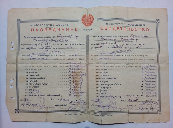 В 1947г. вернулись в Могилёв, мой дед пошел в 9ую школу. Как оказалось, в их доме на Учебном переулке жили немцы, а на момент их возвращения осталась какая-то девушка, видимо прислуга немцев. Но вскоре и ее забрали в КГБ.