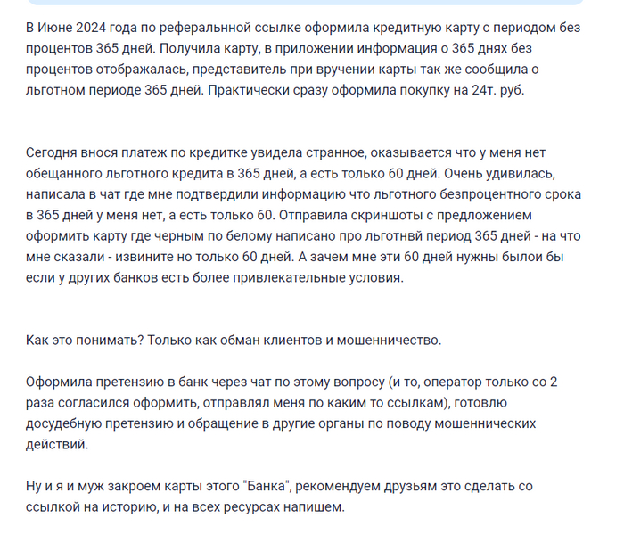 На мой вопрос в поддержке - как так, я же прорекламировал вашу карту, я же обещал условия? - сказали ответ вами получен, пусть оформляет претензию тот кто получил карту.