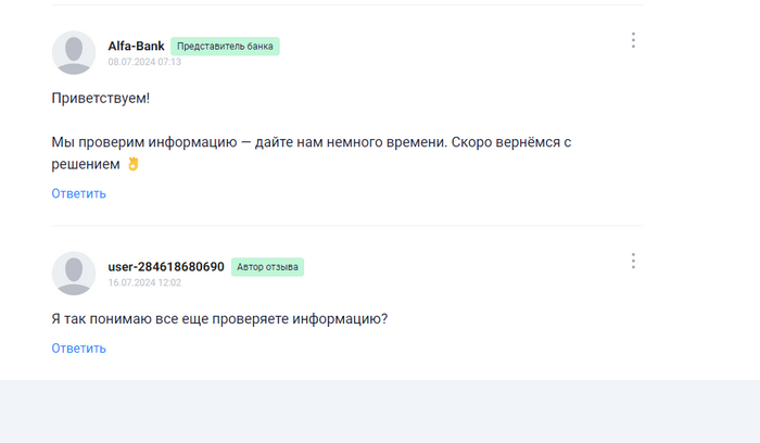 Попутно жена пишет отзыв на банки.ру, на который альфа среагировали и все.