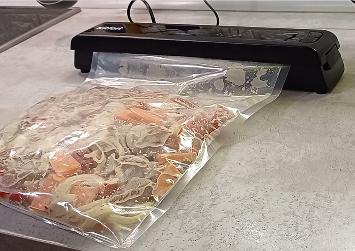 Переложила в пакет, запаяла и на заморозку. Можно хранить в морозильнике до 3 месяцев. Приготовлю в четверг.