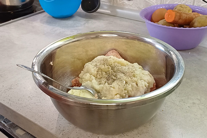 Яйца и овощи уже сварились, вытащила их в миску и оставила остывать.