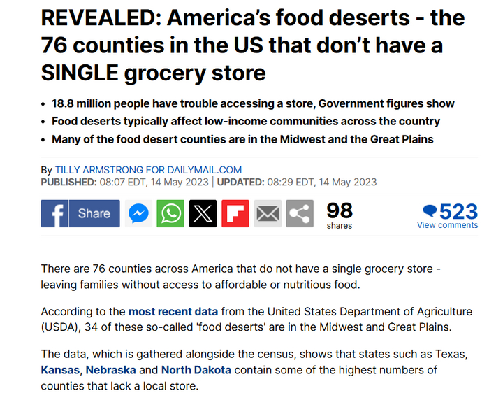 Сравните с Европой: в США есть 70 графств (типа российских районов), где нет ни единого продуктового магазина.