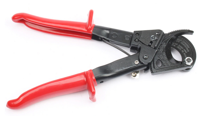 Усиленные ножницы с храповым механизмом — ручной инструмент, предназначенный для резки металлического кабеля и других деталей или заготовок средней твердости круглого сечения. Максимальная площадь сечения заготовок — 240 мм2.