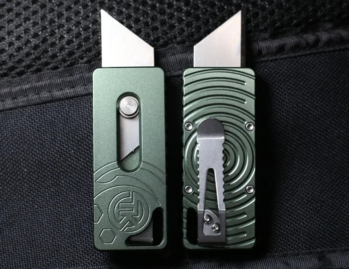 Брелок представляет собой компактное подобие канцелярского ножа с рукоятью из алюминиевого сплава и лезвия из стали марки 6061, с помощью которого можно резать бумагу, пластик, веревки и другие материалы.