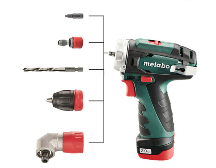 Многофункциональный шуруповерт METABO — универсальный электроинструмент со сменным патроном и широким набором заменяемых аксессуаров.