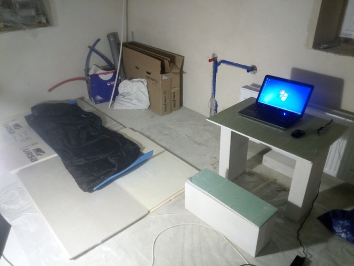 Приехал в командировку на пару недель в г. Буй, электрику доделывать, надо где то спать и отдыхать, обзвонил все отели - сказали "не вышел рожей по qr коду". Обзвонил все объявления по сдаче квартир на сутки - все занято. Пришлось из подручных средств соорудить себе спальное место и место для ноута. А вам приходилось так же обустраиваться? Расскажите ваши истории, а лучше покажите фотки обустроенного места) Чтоб идей на будущее набраться!