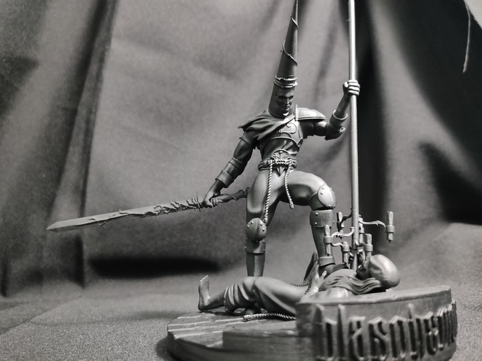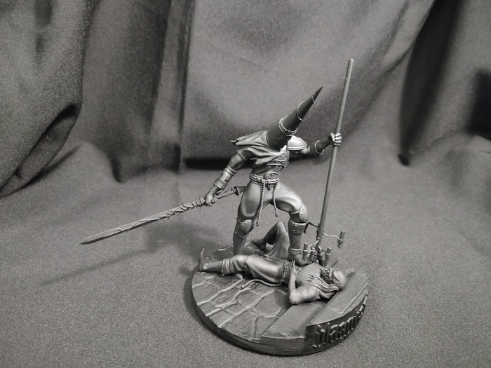 Серая смола у меня кончилась, решил опробовать черный цвет. И блин поверхность фигурки кажется бархатной что-ли. Короче говоря, из принтера моделька выходит прям очень приятной глазу. Единственное, пост обработка получается дольше ибо цвет скрывает огрехи печати, ну да ладно.