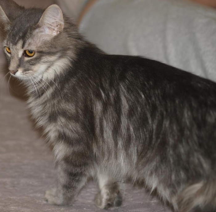 В добрые руки отдаём спасённую с улицы очень пушистую девочку по имени Дымка. Возраст один год. Редкий окрас - голубой мрамор. Игривая , активная , подвижная девочка. Любит играть с другими котиками. Немного пугливая: побаивается незнакомых людей, первое время может не идти на контакт, потом привыкает, с удовольствием сидит на руках и ласкается. Лоток на 5 с плюсом. Здорова, привита.Обращаться к Елене (источник)