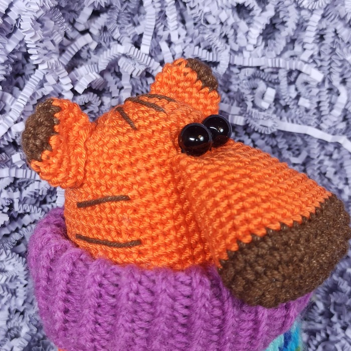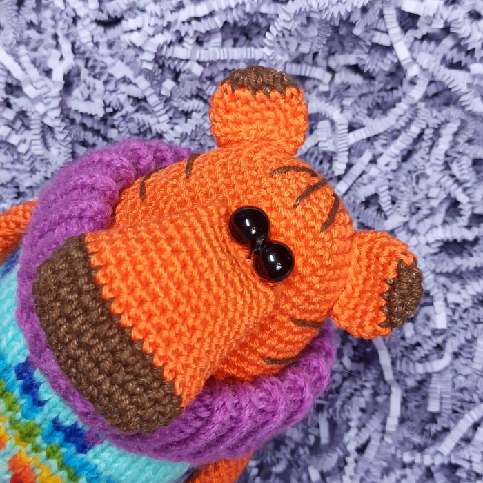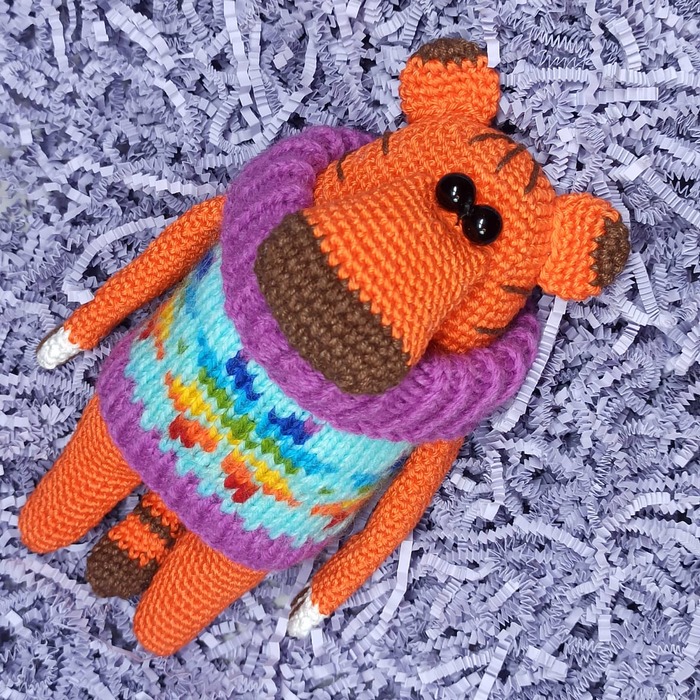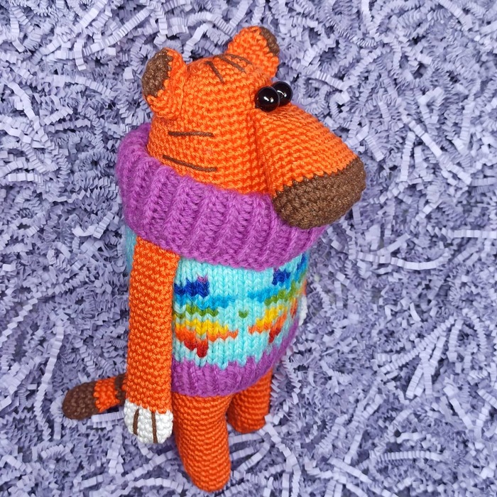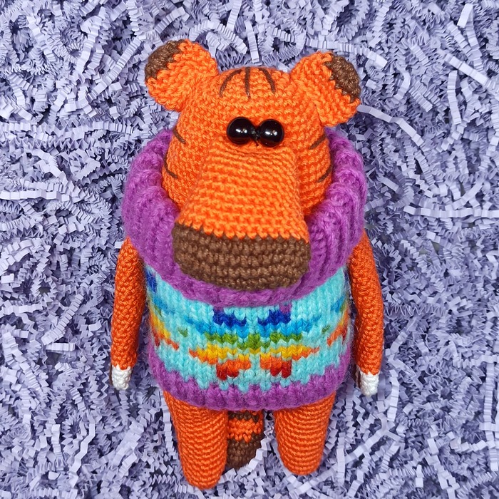В связи с неумолимо приближающимся 2022 на просторах интернета сейчас куча всяких вязаных тигров, и все они какие-то обычные. И захотелось чего-то иного) Образ пришёл неожиданно и был воплощён в жизнь за пару дней)