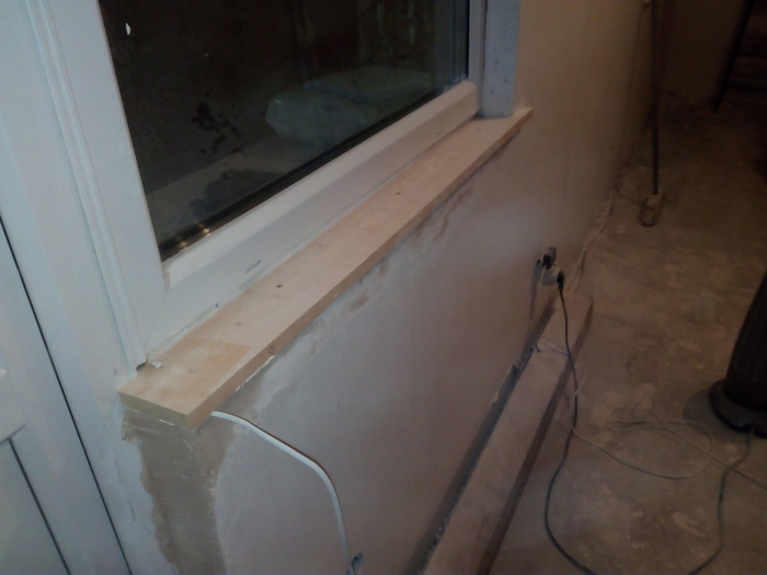 На внутренней стене был перепад в пару сантиметров его пришлось выравнивать ротбандом.