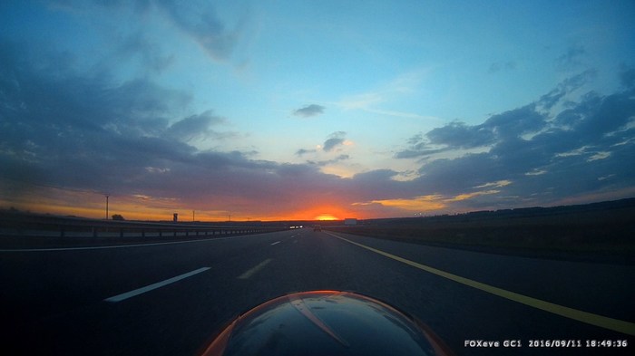 А закат? Почему закат всегда так великолепен на мотоцикле на трассе? Этот безграничный простор. Ему не снижает контраст стекло, у него нет прямоугольной рамки из крыши, капота и стоек. Вы его не только видите. Вы его чувствуете. Видите как ползут тени. Слышите как чуть меняется звук во влажности низин. Нюхаете запах поля, когда дневной зной сменяет вечерняя прохлада.