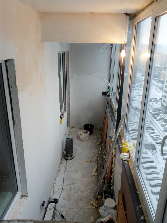 Финальное выравнивание стен далось тяжело. На улице внезапно в конце ноября пришла зима и стало холодно, а маленький обогреватель не справлялся с сушкой стен.