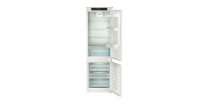 Ну а теперь рассмотрим лучший тихий холодильник в категории встраиваемых — Liebherr ICNSf 5103. Модель наделена двумя независимыми контурами охлаждения Dual Cooling, что позволяет точно поддерживать заданную температуру в каждой камере. А угольный фильтр защитит отделения от неприятных запахов и позволит продуктам дольше сохранять свежесть.