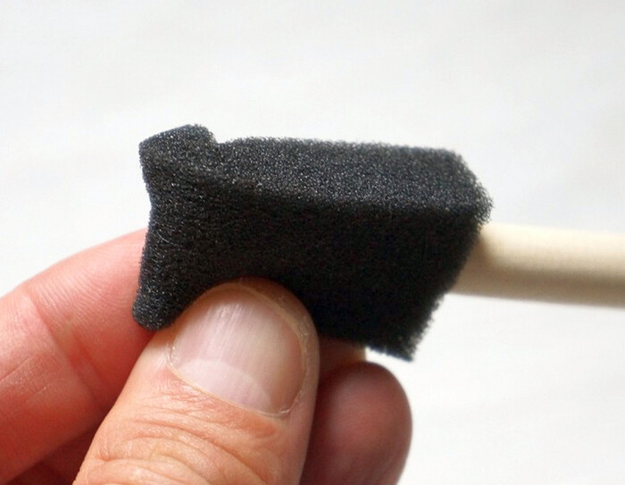 Поролон обычный мягкий, темного цвета (хотя наверное светлого был бы лучше, сразу можно было бы наблюдать результативность уборки по изменению цвета).