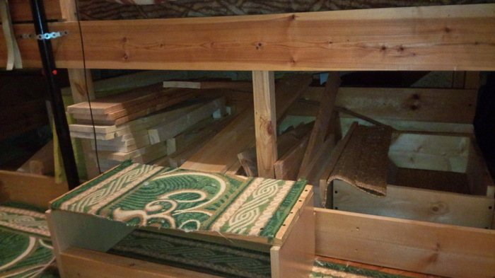 Внизу остатки досок от всех остальных проектов (ванна, комната, кухня). И подставка под ноги.
