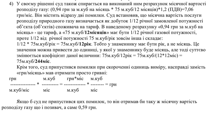 При этом суд допустил две ошибки – сначала в одном из параметров, а потом – при сокращении единиц измерения. Не допусти он этих ошибок, и результат получился бы такой как у меня, а не как у Херсонгаза.