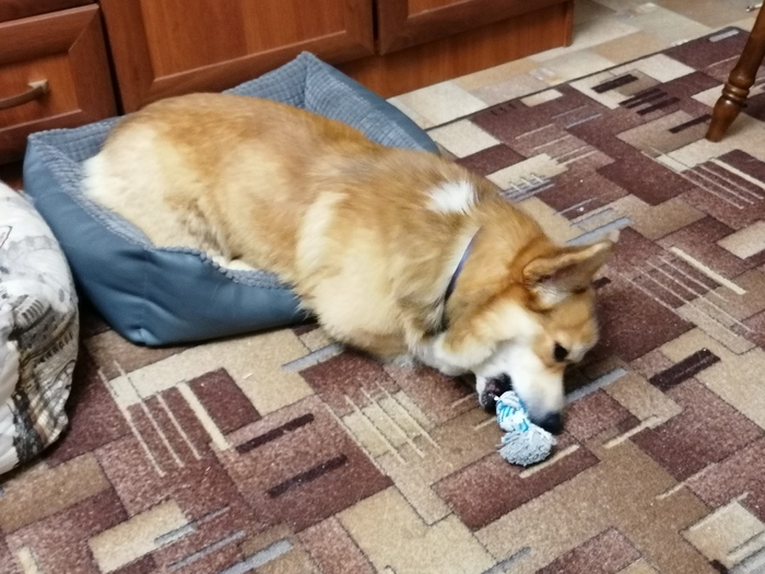 Моих хвостатых Снегурочка не обделила вниманием. Собака, вернувшаяся с прогулки, тут же вцепилась в игрушке и никого к ней не подпускает)