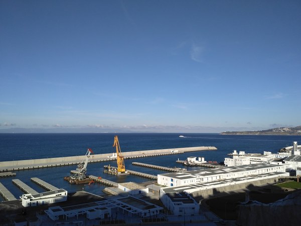 Так же видно паром уходящий в Испанию. Сюда, кстати, и приходят паромы с европейскими туристами, а т. к. мы были на католическое Рождество, то туристов было много, особенно много домов на колесах встречается.