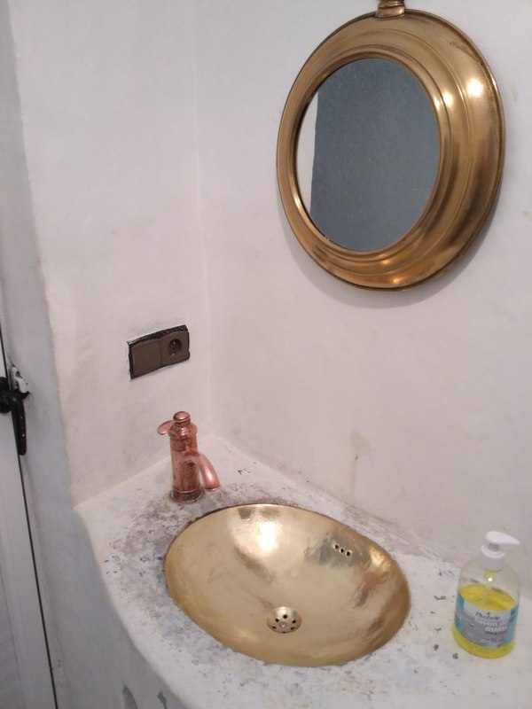 Отель у нас был в самой Медине, стиль его соответствующий, внутри красотища, ценник около 15 евро – все классно, особенно медный смеситель и раковина: