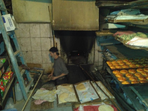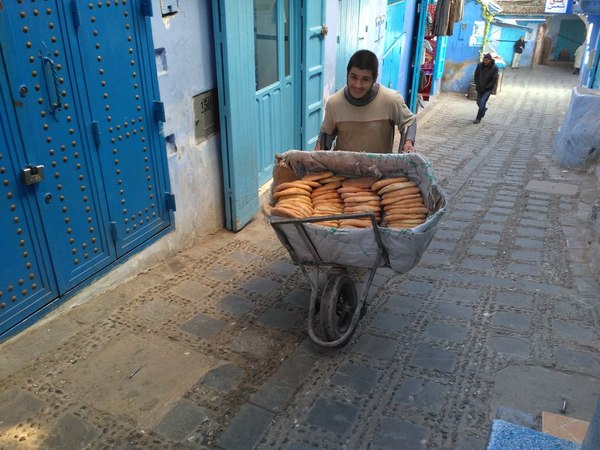 В Марокко много домашних пекарен. Народ по утрам закупается свежим хлебом, а чаще всего приносит свое тесто чтобы за небольшую плату воспользоваться большой печью: