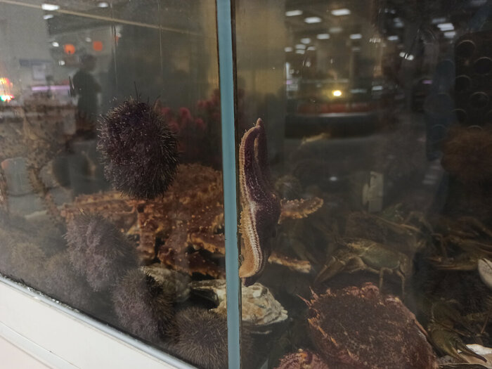 Конечно, витрины с живностью привлекают внимание в первую очередь, так как это почти зоопарк, но с возможностью дегустации.
