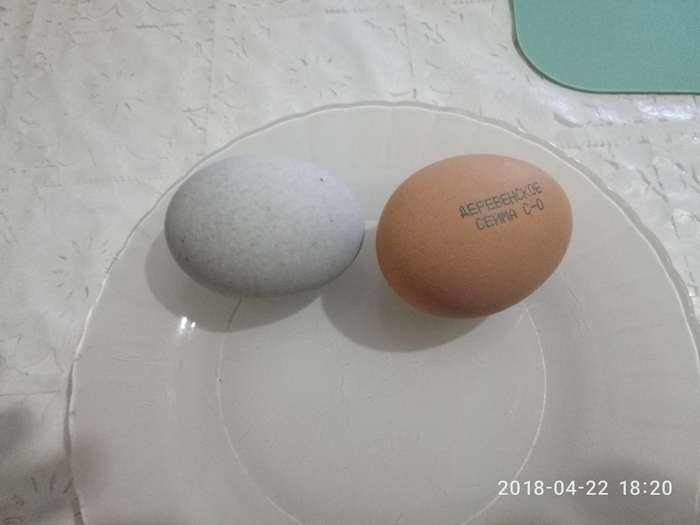 Для сравнения - справа обычное куриное яйцо С0