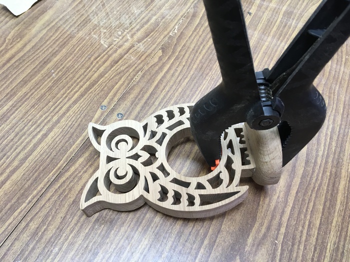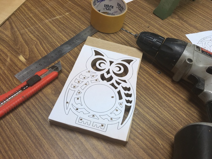 Выпиливал на лобзиковом станке. Также использовал шуруповерт, фрезер и ленточную пилу. Покрыл льняным маслом.