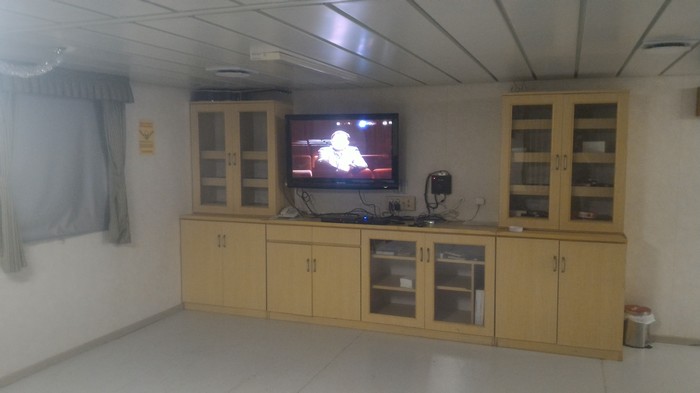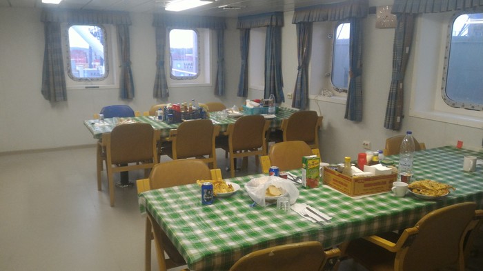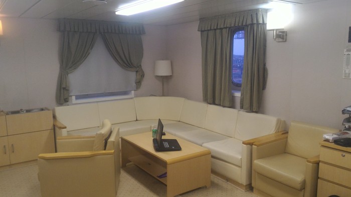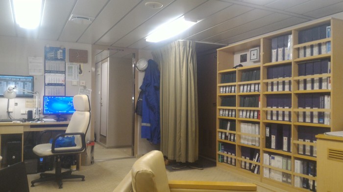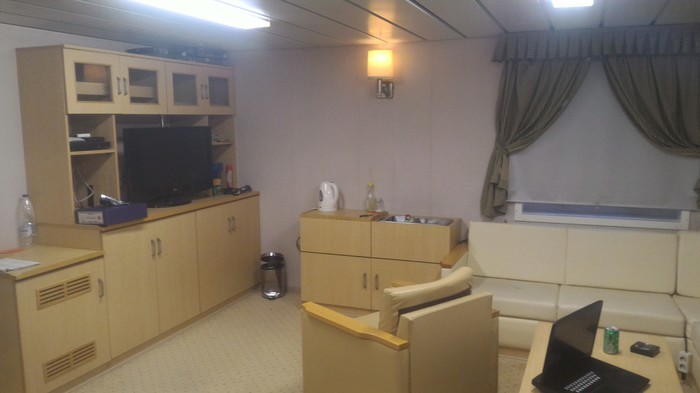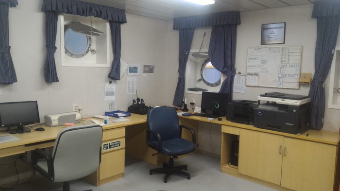 Постараюсь рассказать. После подъема по товару обычно попадаете в коридор и первое большое помещение это судовой офис.