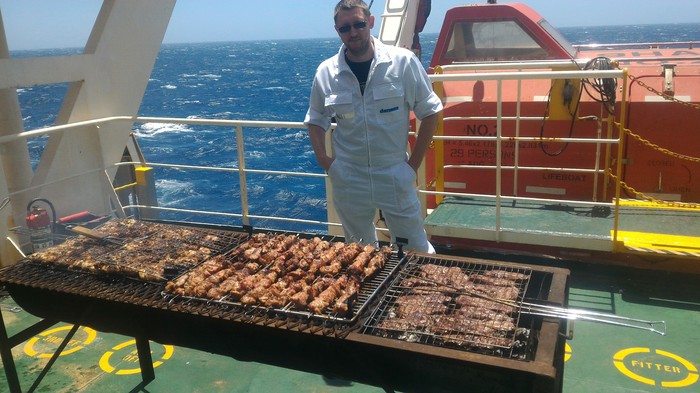 Иногда бывают шашлыки, все зависит от рейса, погоды и настроения кэпа.