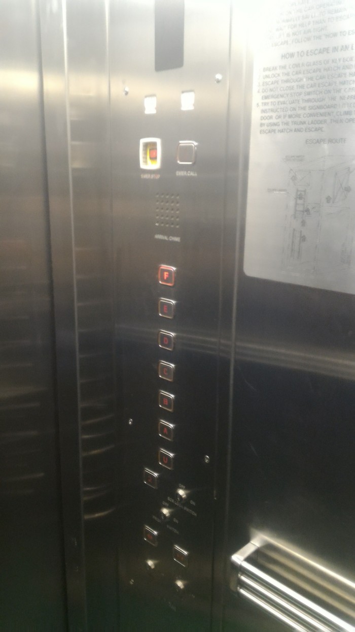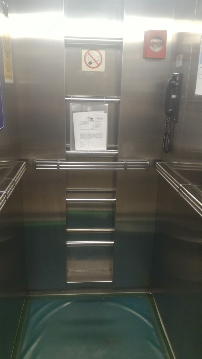 Лифт по размерам чуть меньше чем в обычной многоэтажке, 5 человек могут разместиться. Отличие от обычного, что вместо цифровой буквенная раскладка по палубам( этажам). Еще есть телефон и аварийный выход))
