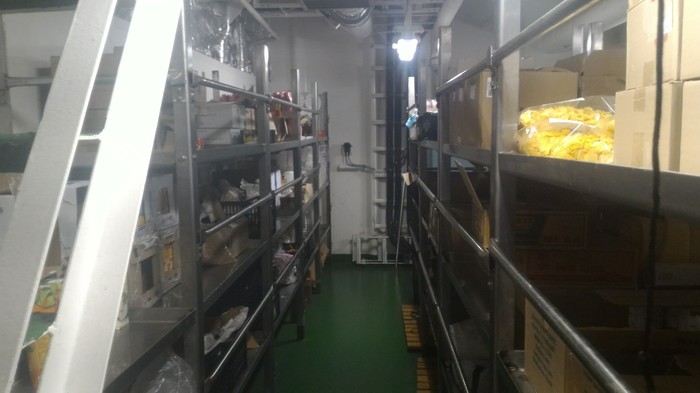Мясная, рыбная и овощная. Запаса продуктов хватает на месяц, но свежее поступление обычно каждые 2 недели.
