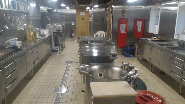 Далее, самое важное на теплоходе это камбуз. У нас 24 морды которые постоянно хотят есть и на эту толпу нужно постоянно готовить.