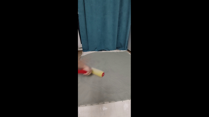После этого на мы берем ткань (зависит от назначение ковра будет он висеть на стене и ублажать зрительные анализаторы или же целовать ваши пяточки после горячей ванны) и просим жену вам помочь так как додуматься и положить раму на пол могут не только лишь все и накладываем ее на наш задник, затем берем валик и нежными движениями с помощью клея сводим вместе задник и ткань.