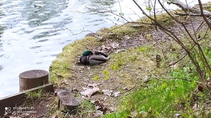 Утки уже разобрались по парам и отъедаются после долгой зимы в местном пруду