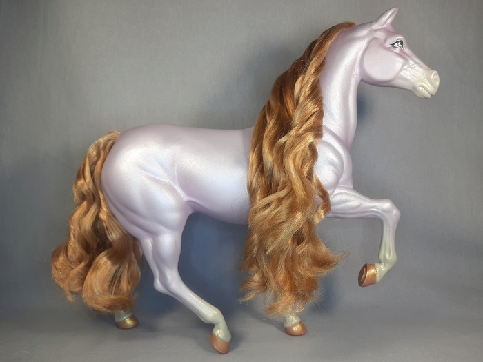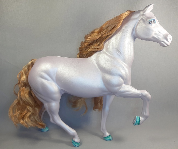 Ранее кем-то была выполнена роспись, но местами на корпусе краска потекла. Конь перекрашен, глаза оставила от предыдущего мастера. Последнее фото - до моей работы.