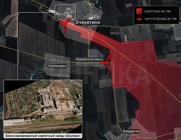 После небольшой оперативной паузы, связанной с перегруппировкой, ВС РФ прорвали оборону противника и смогли продвинуться более чем на три километра вглубь украинских позиций, войдя в поселок Очеретино.
