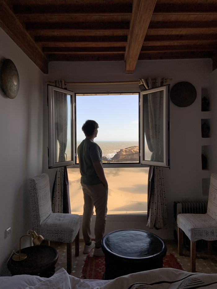 Города Марокко, Туниса и некоторых других восточных стран имеют в центре себя т.н медину (не путать с Мединой в Саудовской Арабии) которая представляет собой старый город, как правило окруженный мощной стеной. Это именно та часть, которая похожа на локации мультика Алладин, и сериала Клон. Парень - таксист встретил нас у выхода и повёз в эту самую медину. Внутри медины перемещаться можно только на велосипеде\мотоцикле\своих двоих. Поэтому довезли нас до её края где передали в руки персонала. У нас взяли чемоданы и повели к локации. Петлять много не пришлось, место находилось близко от южных ворот. Но без указателей мало что можно найти. Сам риад встретил нас прохладой, пением птиц и вкуснейшим мятным чаем. Это был настоящий оазис в пустыне. Не забывая про tiping я сунул встречающему нас 20 дирхам. Я это всё ещё делал и делаю неуклюже так как не привык (мне в целом проще самому сумки таскать, да и не люблю когда встречают). Забегая вперёд - почти все чаевые которые мы оставляли окупились с лихвой. Нас расспросили про то откуда мы как прилетели, дали ключи и проводили в наш первый номер. Номер был красивым и из-за усталости после полёта пару часов мы провели в номере. Ни одного окна, и только один световод в ванной.